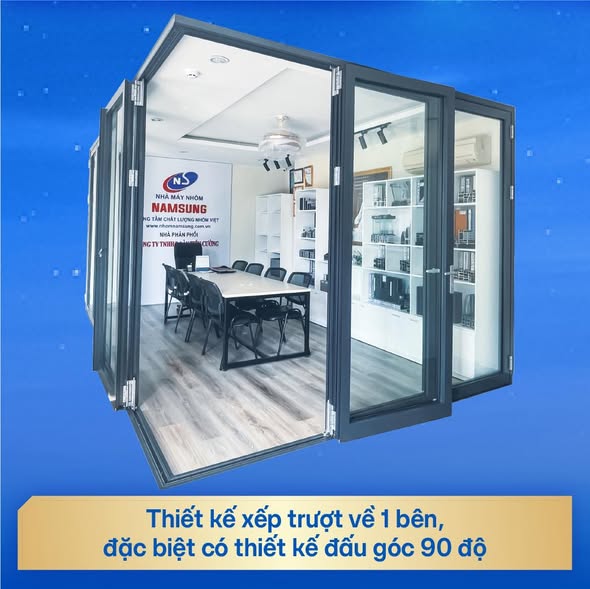 Cửa xếp ngày càng trở nên phổ biến trong thiết kế nội thất hiện đại nhờ khả năng tiết kiệm không gian và dễ dàng vận hành. NS-LUX AF80 nổi bật với thiết kế góc 90° , cho phép cửa sổ gọn gàng về một bên khi mở, tạo ra không gian thoáng đãng và linh hoạt. Điều này đặc biệt phù hợp cho các căn hộ nhỏ, ban công hoặc phòng khách, nơi bạn muốn tận dụng tối đa ánh sáng tự nhiên mà không cần diện tích.
