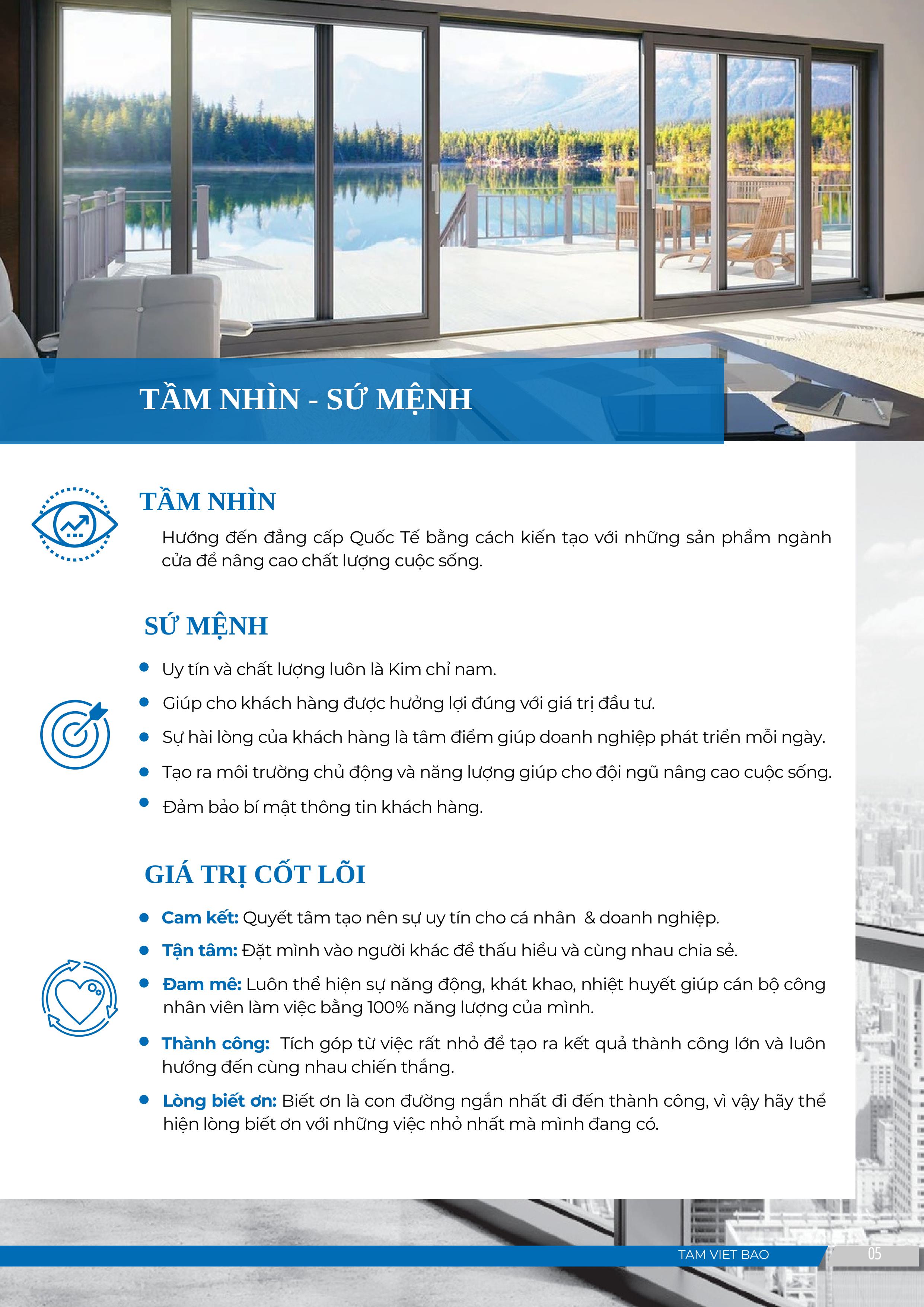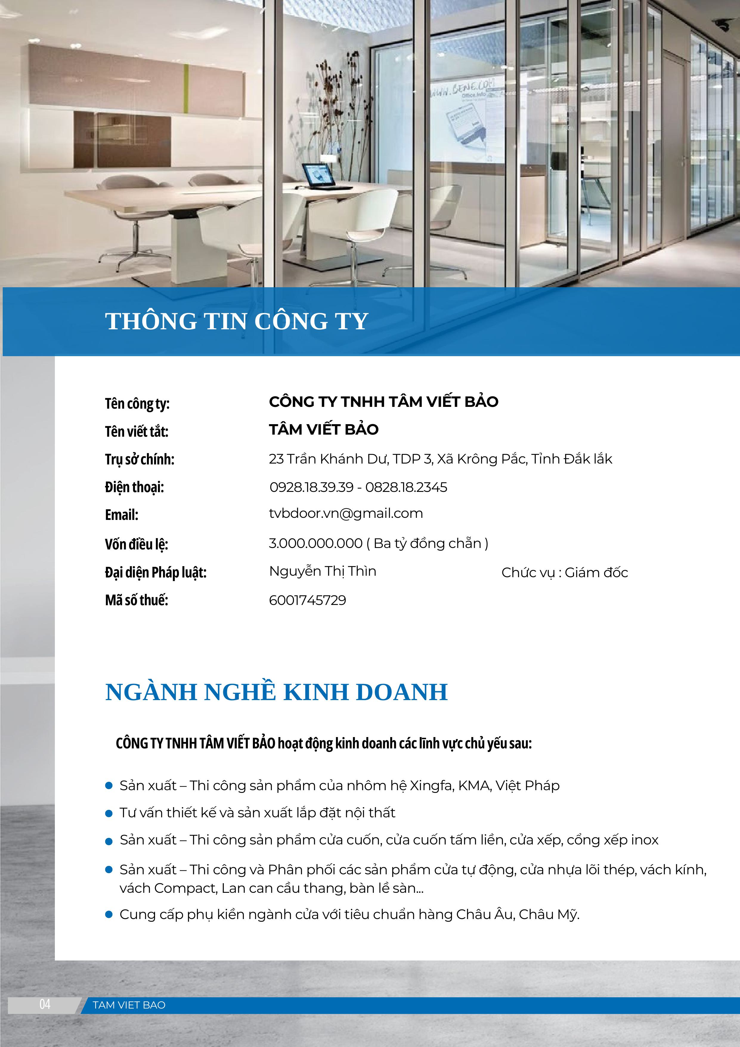 Kể từ khi thành lập cho đến thời điểm hiện tại, CÔNG TY TNHH TÂM VIẾT BẢO cung cấp các giải pháp toàn diện về ngành cửa (Cửa nhôm Xingfa, Cửa nhựa lõi thép, vách kính, vách Compact, bàn lề sàn…) phục vụ nhu cầu ngày càng cao của thị trường. Với tập thể ban lãnh đạo có Tâm huyết, tầm nhìn và đội ngũ nhân viên chất lượng, đến nay Công Ty chúng tôi đã trở thành Doanh nghiệp uy tín trong lĩnh vực sản xuất sản phẩm về cửa cuốn nhôm kính trong cả nước. Với dây chuyền thiết bị hiện đại và công nghệ sản xuất tiên tiến, CÔNG TY TNHH TÂM VIẾT BẢO đã đưa ra thị trường sản phẩm cửa cuốn cao cấp, cửa nhôm, cửa nhựa lõi thép, vách mặt đựng và hệ nhôm cao cấp… có chất lượng cao, phù hợp với mọi công trình, được người tiêu dung Việt Nam đón nhận, đánh giá cao về chất lượng, dịch vụ và tiện ích sử dụng.