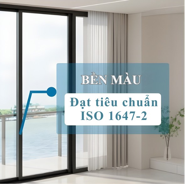 Một trong những ưu điểm nổi bật của nhôm Tâm Viết Bảo có khả năng giữ màu ổn định, đạt tiêu chuẩn ISO 16474-2. Tiêu chuẩn này đảm bảo rằng sản phẩm không bị phai màu dù tiếp xúc với nắng nóng hay khí hậu hành khô vùng núi. Điều này có nghĩa là cửa nhôm của bạn sẽ luôn được giữ vẻ đẹp ban đầu, không cần bảo trì thường xuyên.